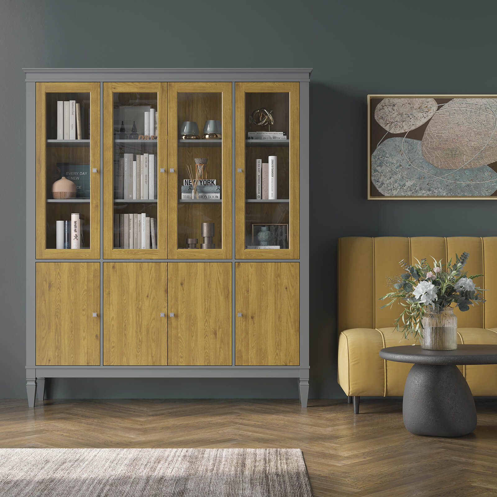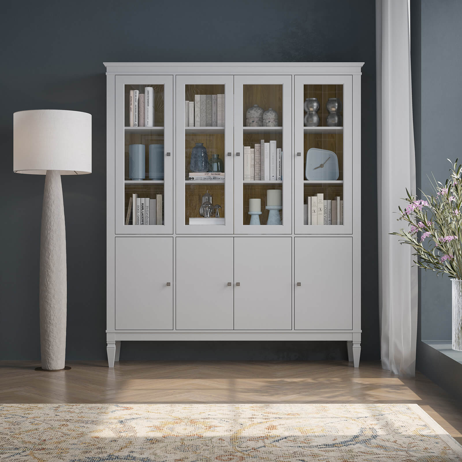 Шкаф для посуды “Ольса-С” 440 - отличный вариант для хранения любимых книг. Здесь они будут в полном порядке и всегда под рукой. Оснащен шестнадцатью вместительными полками за стеклянными дверями сверху и  филенчатыми дверями снизу. Устойчиво держится на высоких ножках. Хороший вариант для гостиной, детской комнаты или кабинета. Может использоваться самостоятельно или в сочетании с другими предметами из этой коллекции.