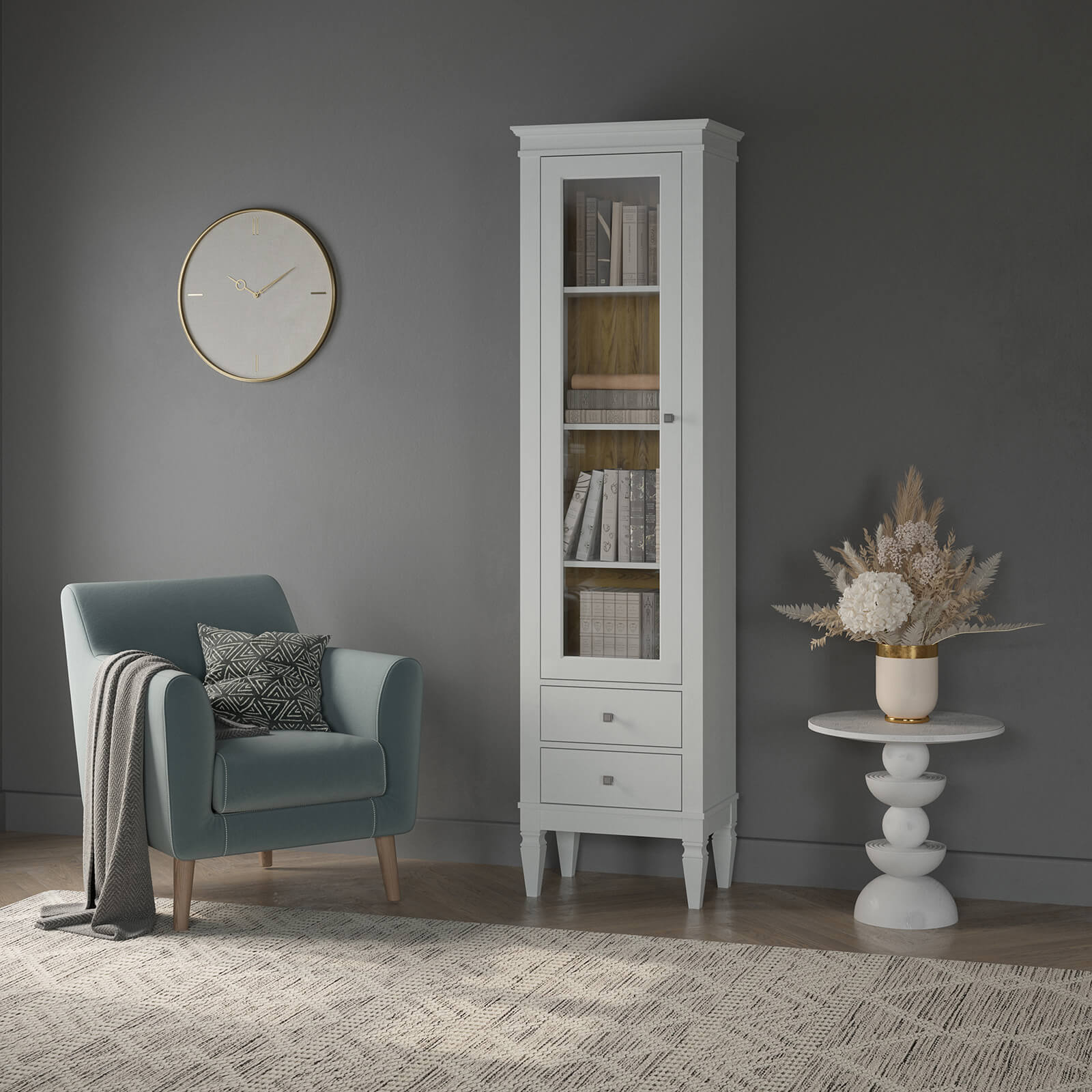 • Модель доступна в цвете «белый лак», «серый 7042/антик 24»;
