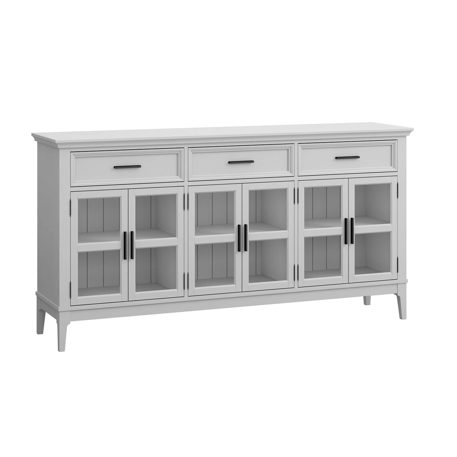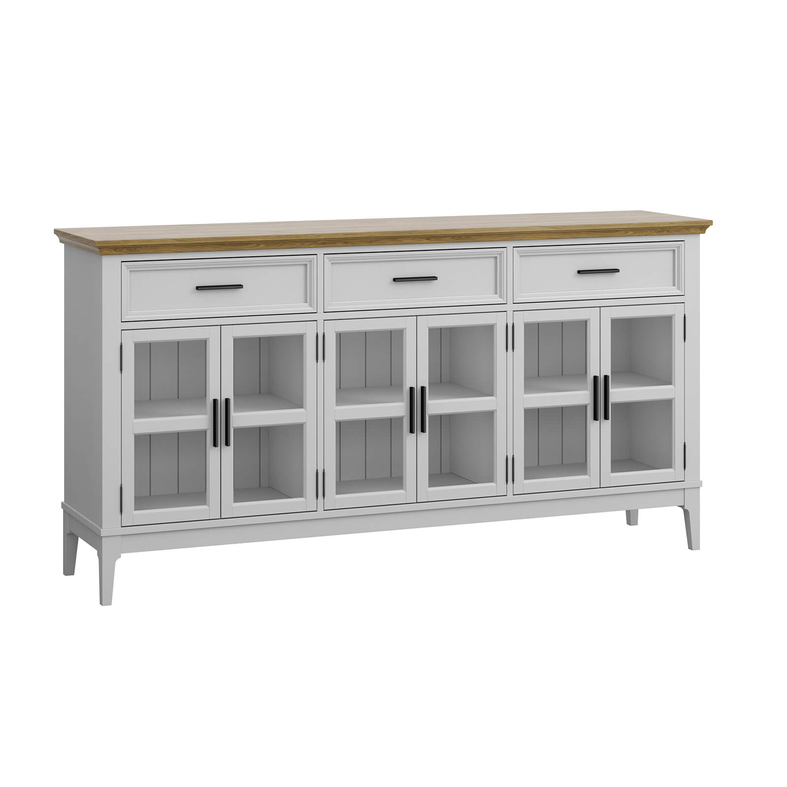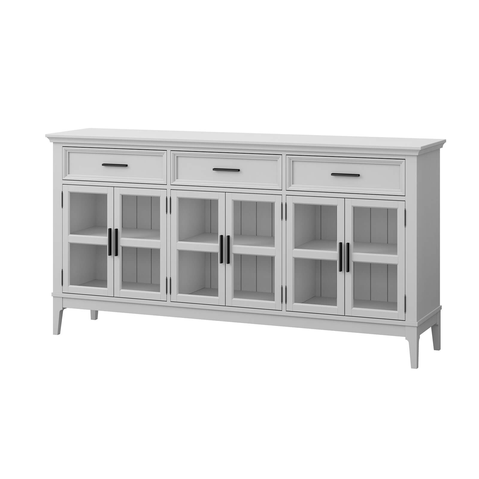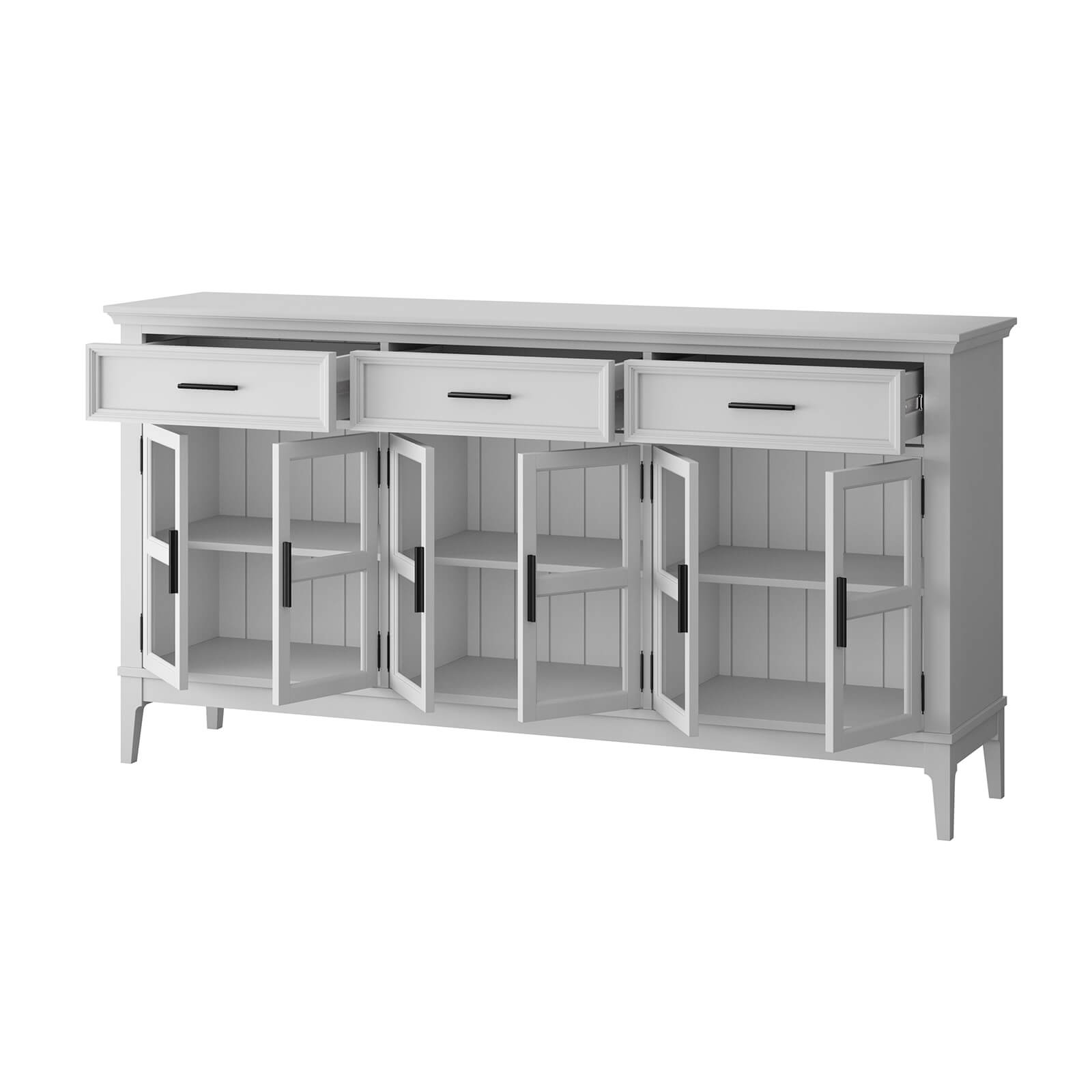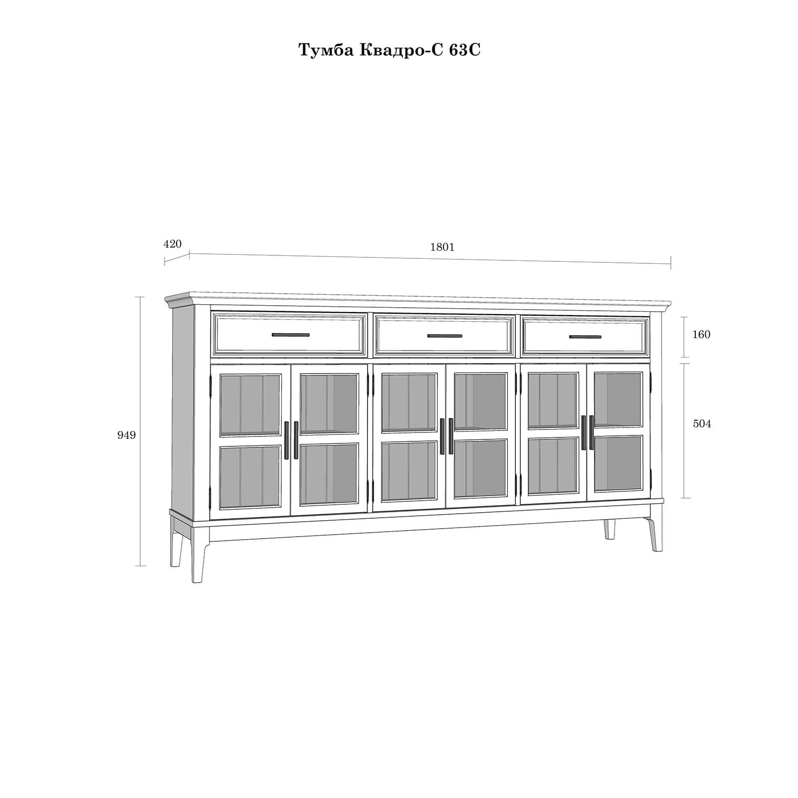 Тумба «Квадро-С» 063С широкая и удобная. Состоит из трех вместительных отделений с полками за распашными, стеклянными дверками, сверху три выдвижных ящика. Подойдет как для прихожей, спальни или гостиной в городской квартире, так и для загородного дома.