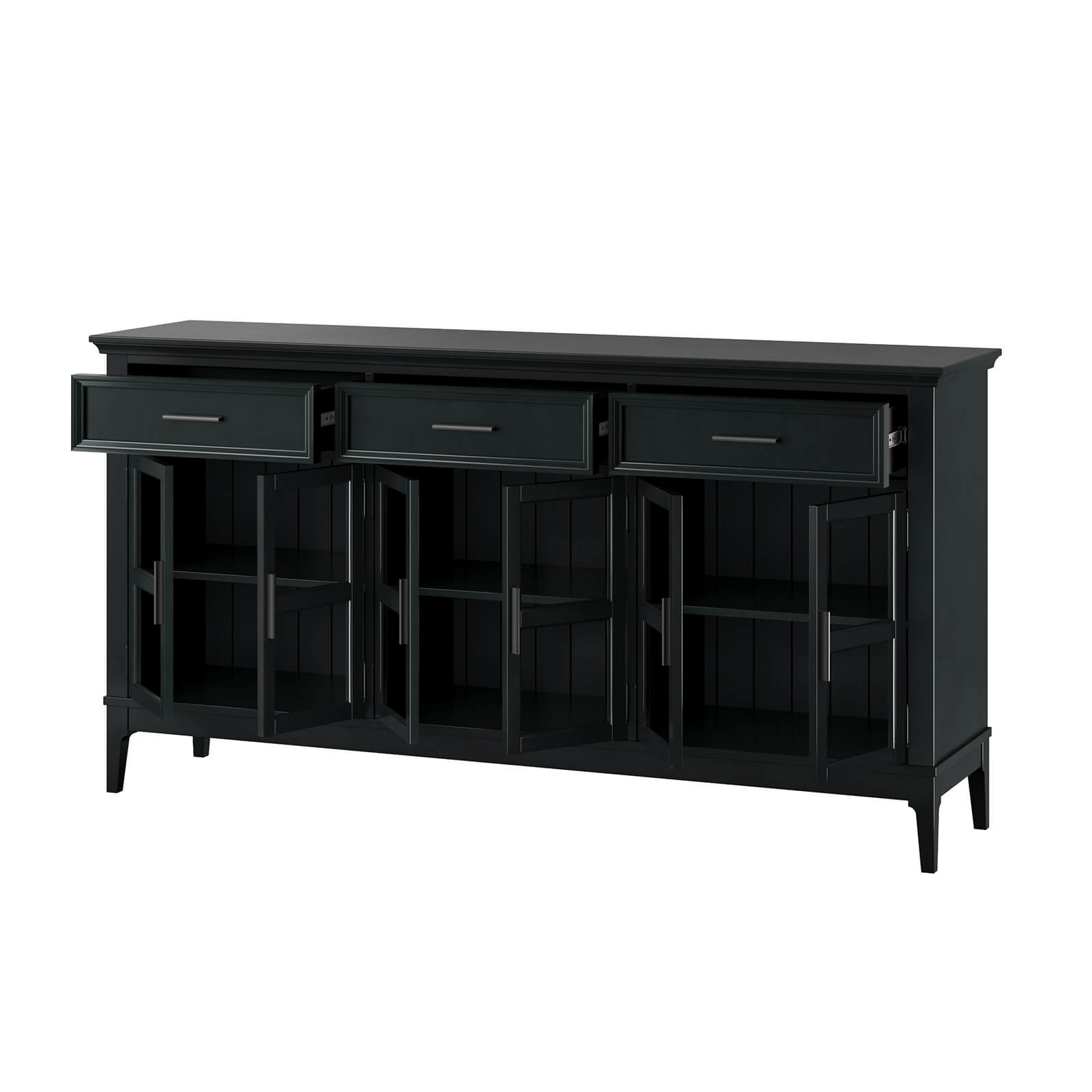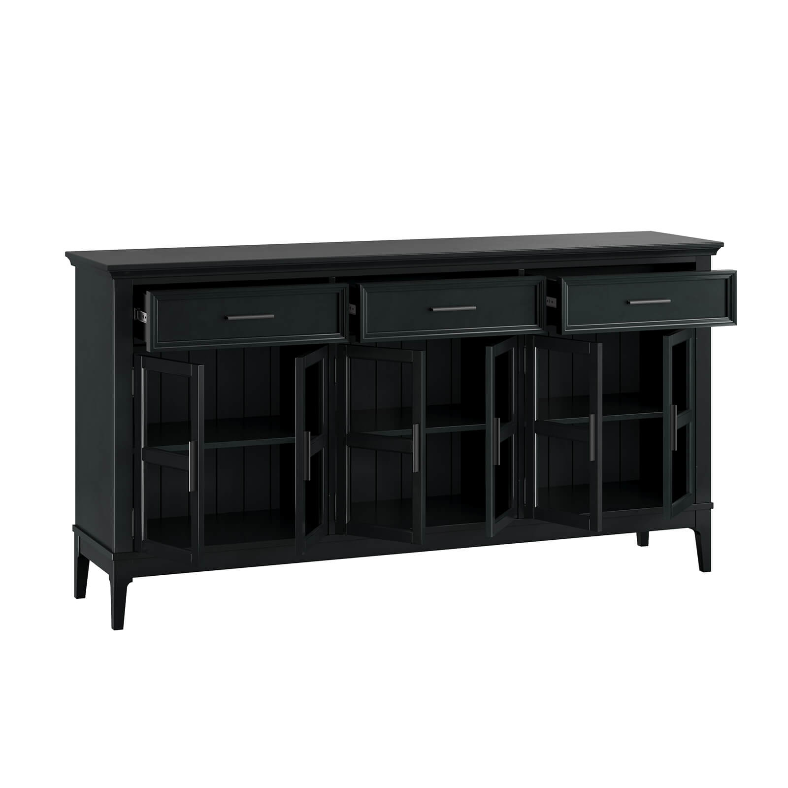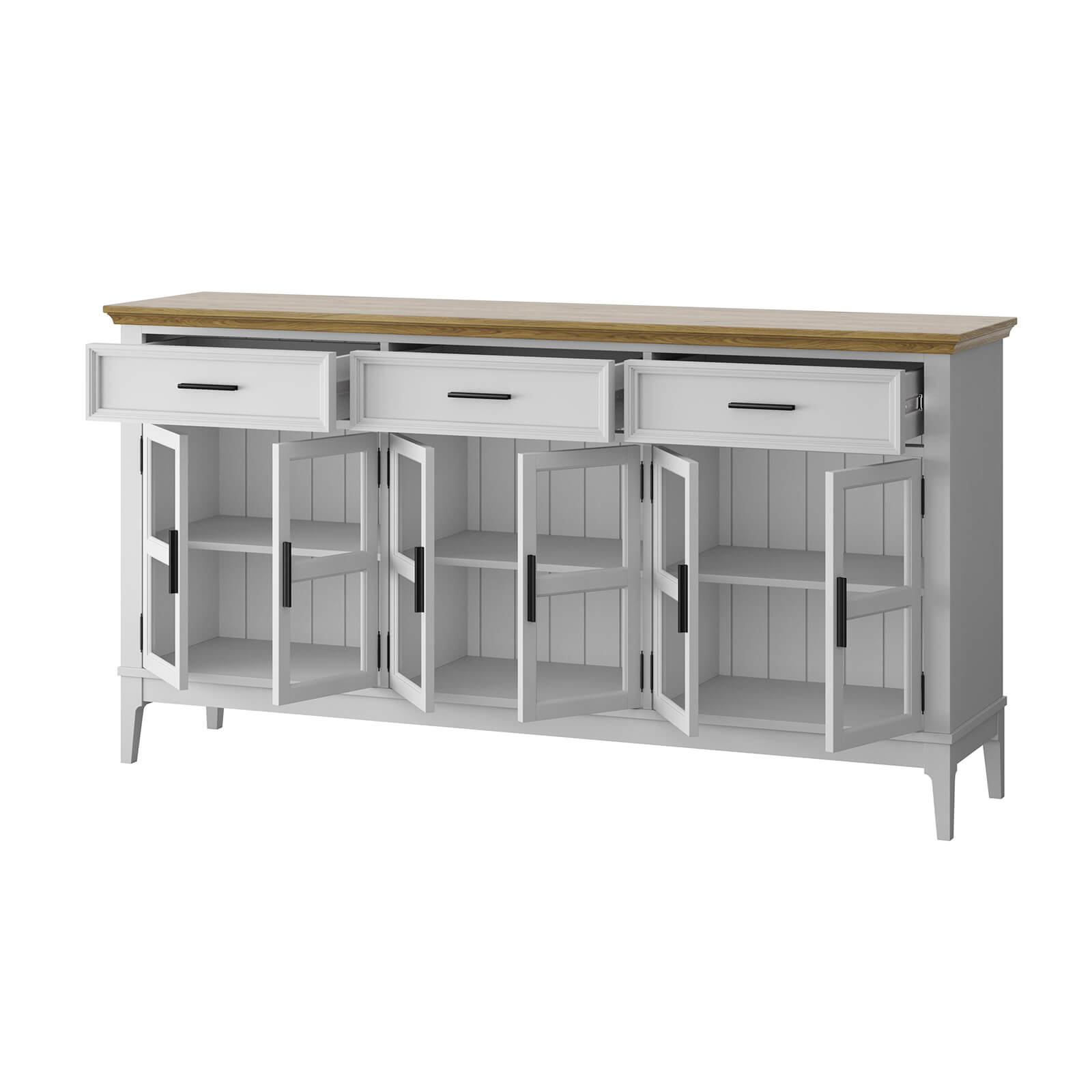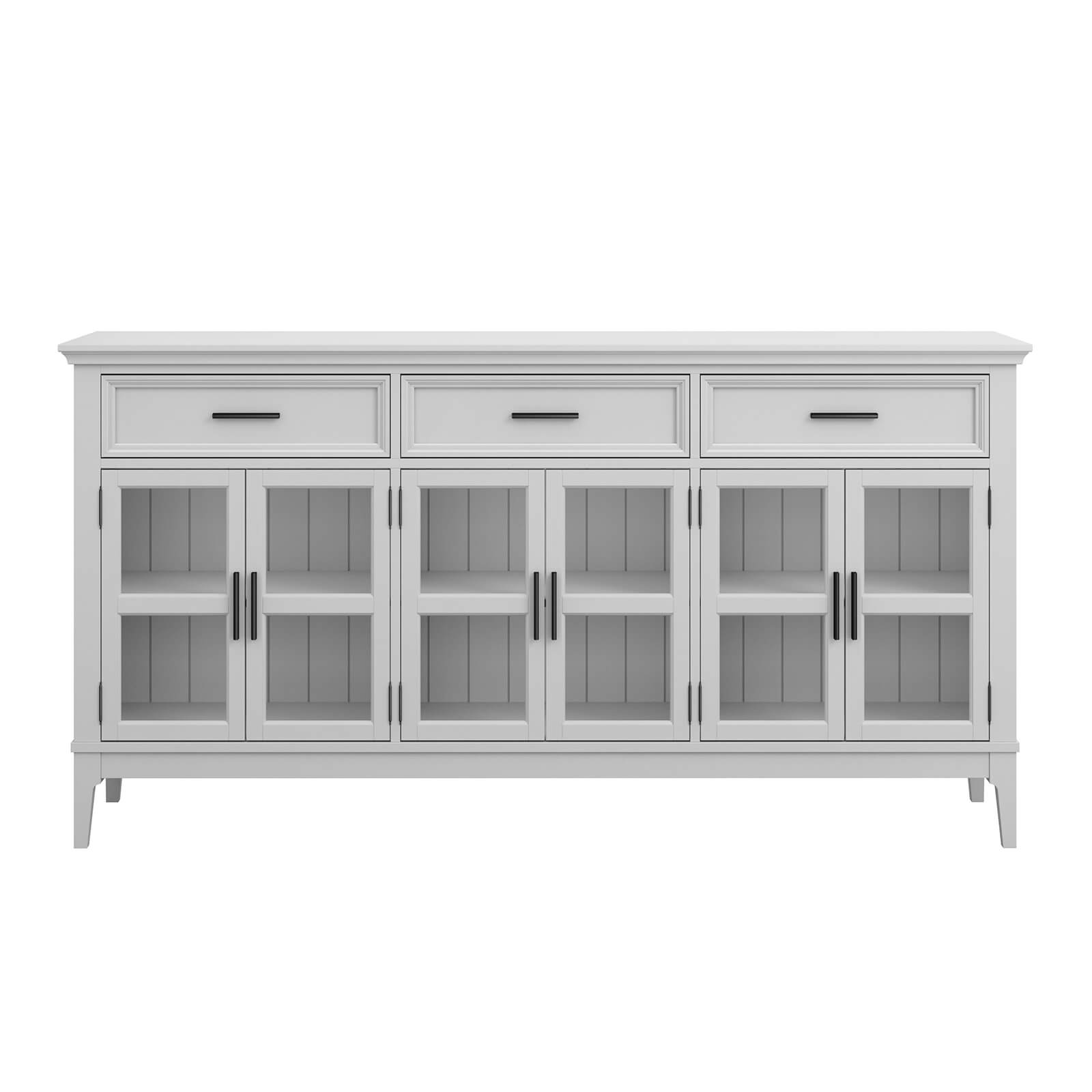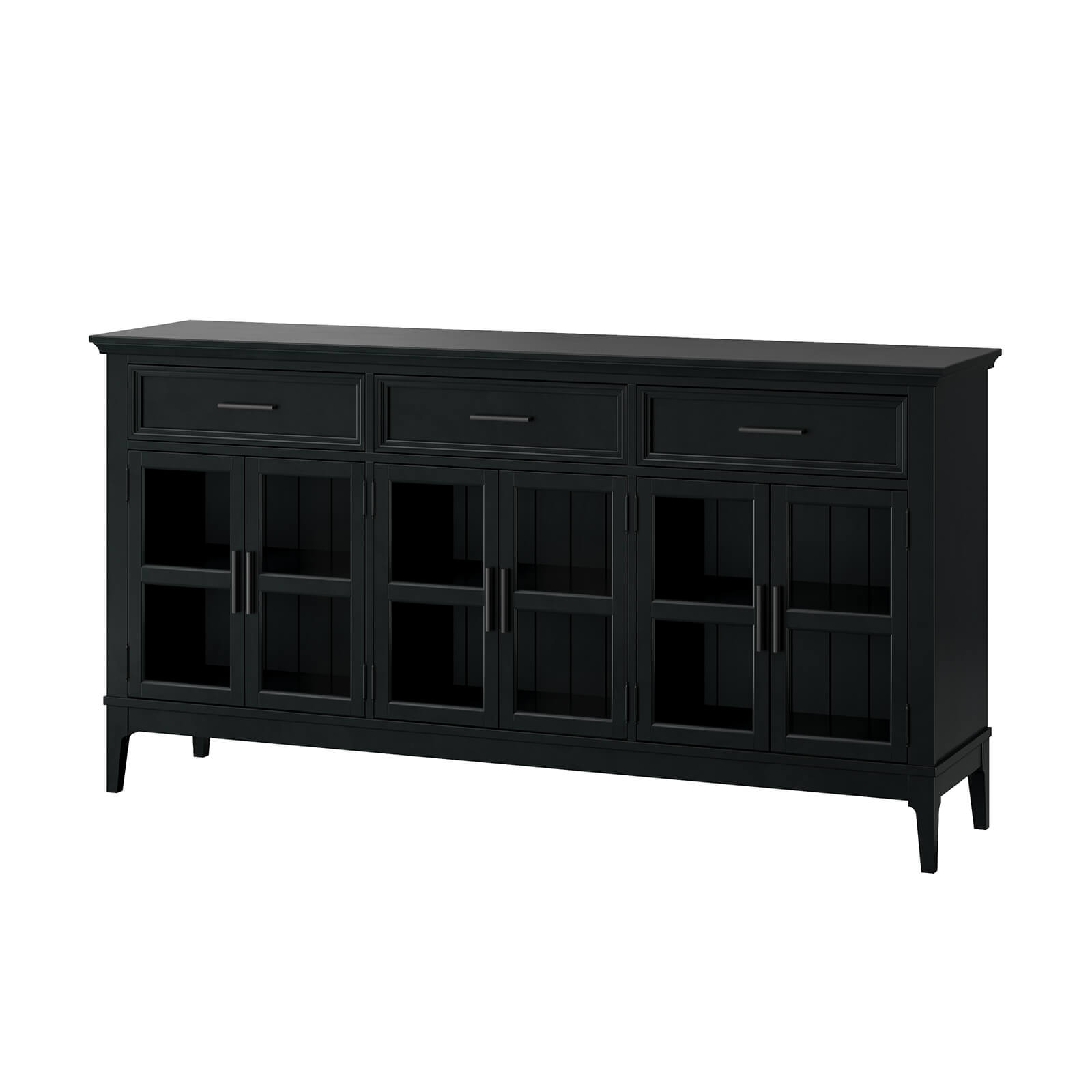 Тумба «Квадро-С» 063С широкая и удобная. Состоит из трех вместительных отделений с полками за распашными, стеклянными дверками, сверху три выдвижных ящика. Подойдет как для прихожей, спальни или гостиной в городской квартире, так и для загородного дома.