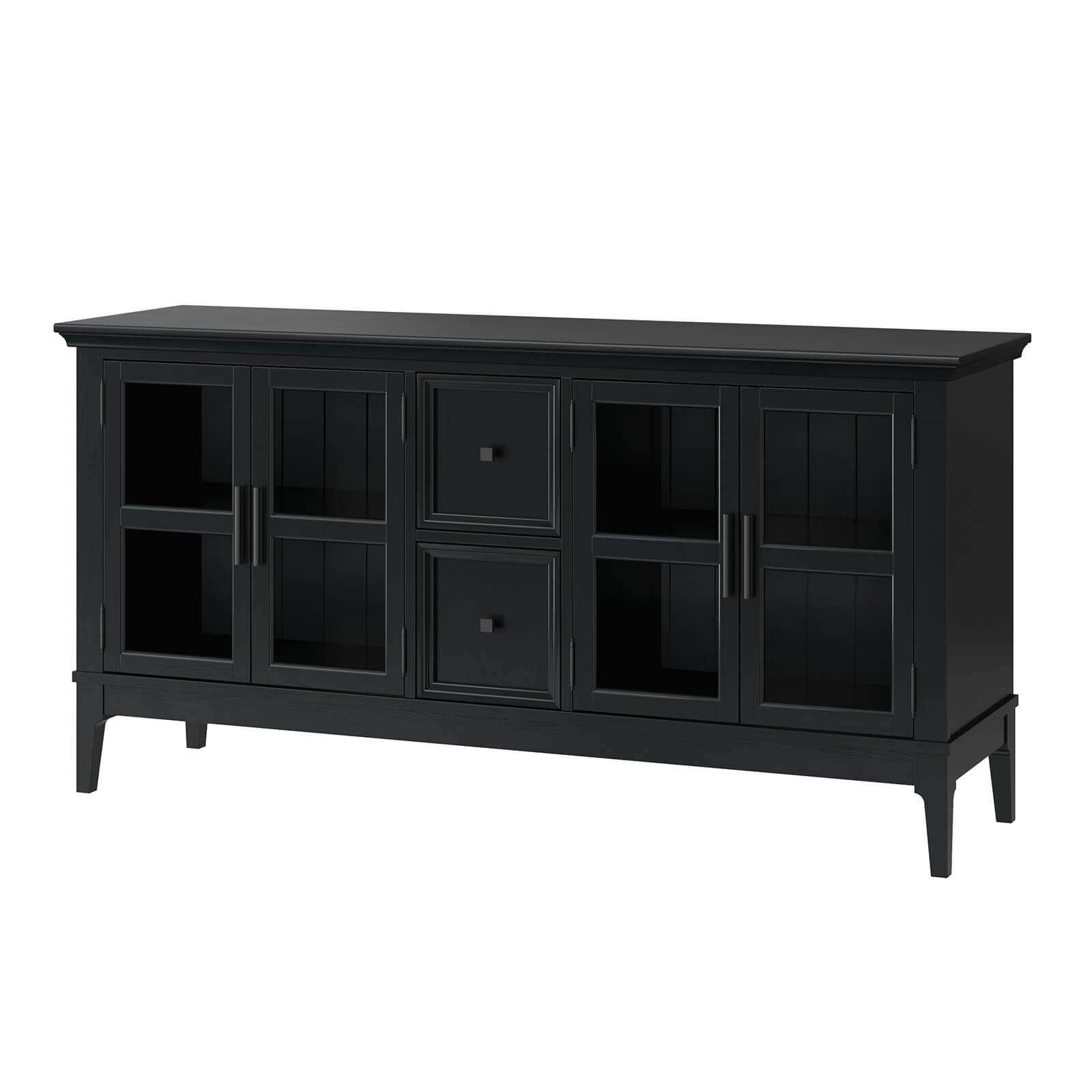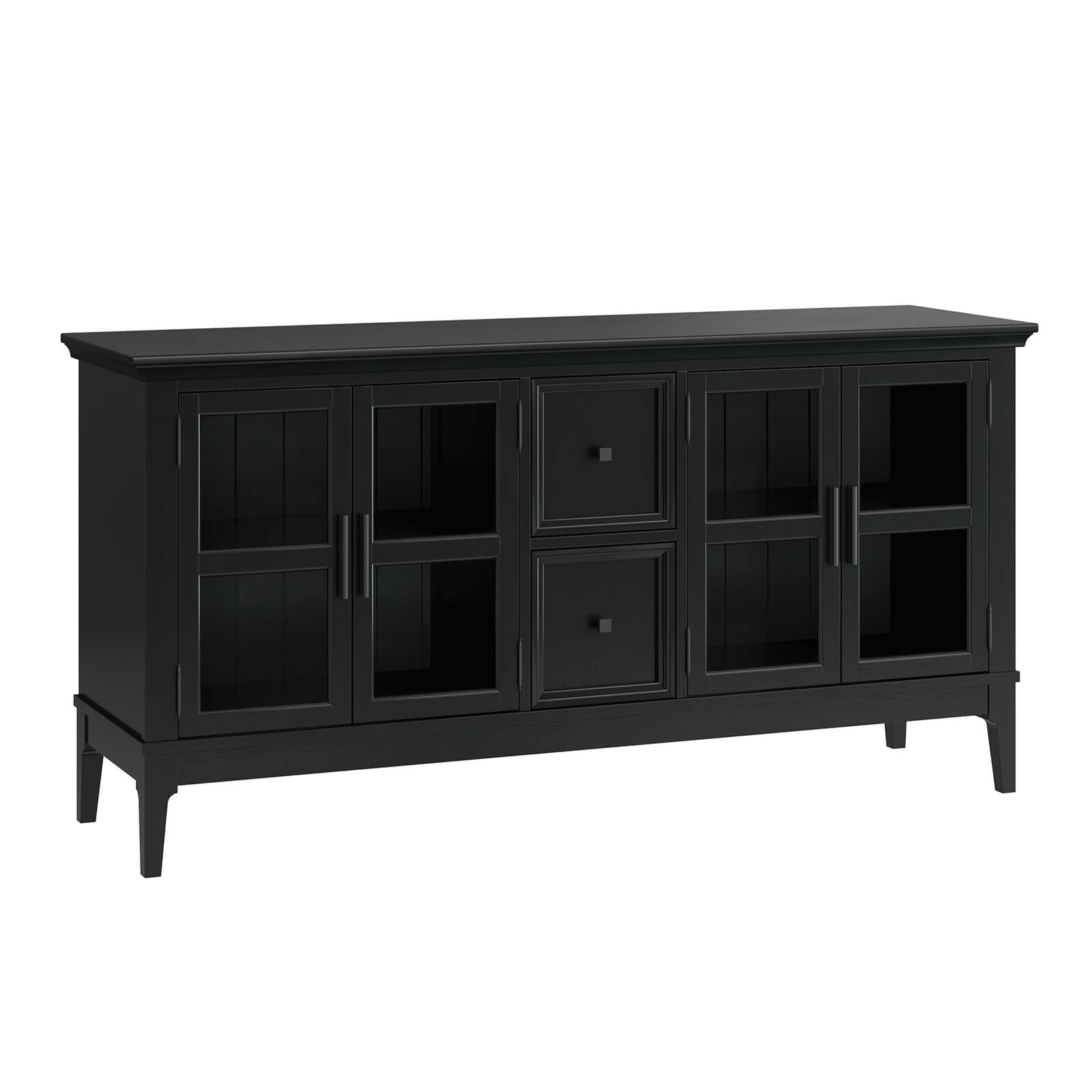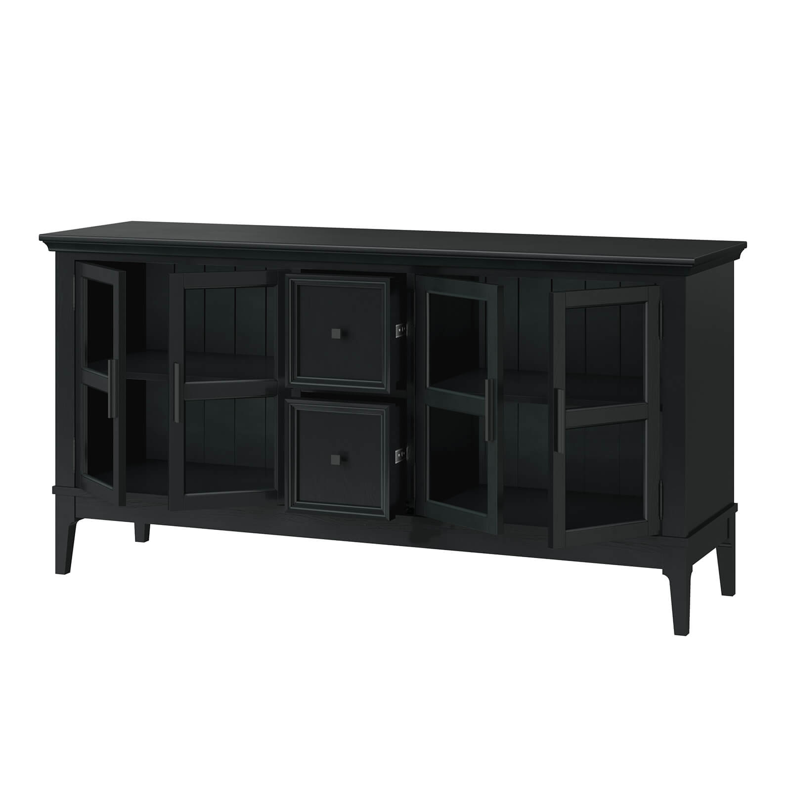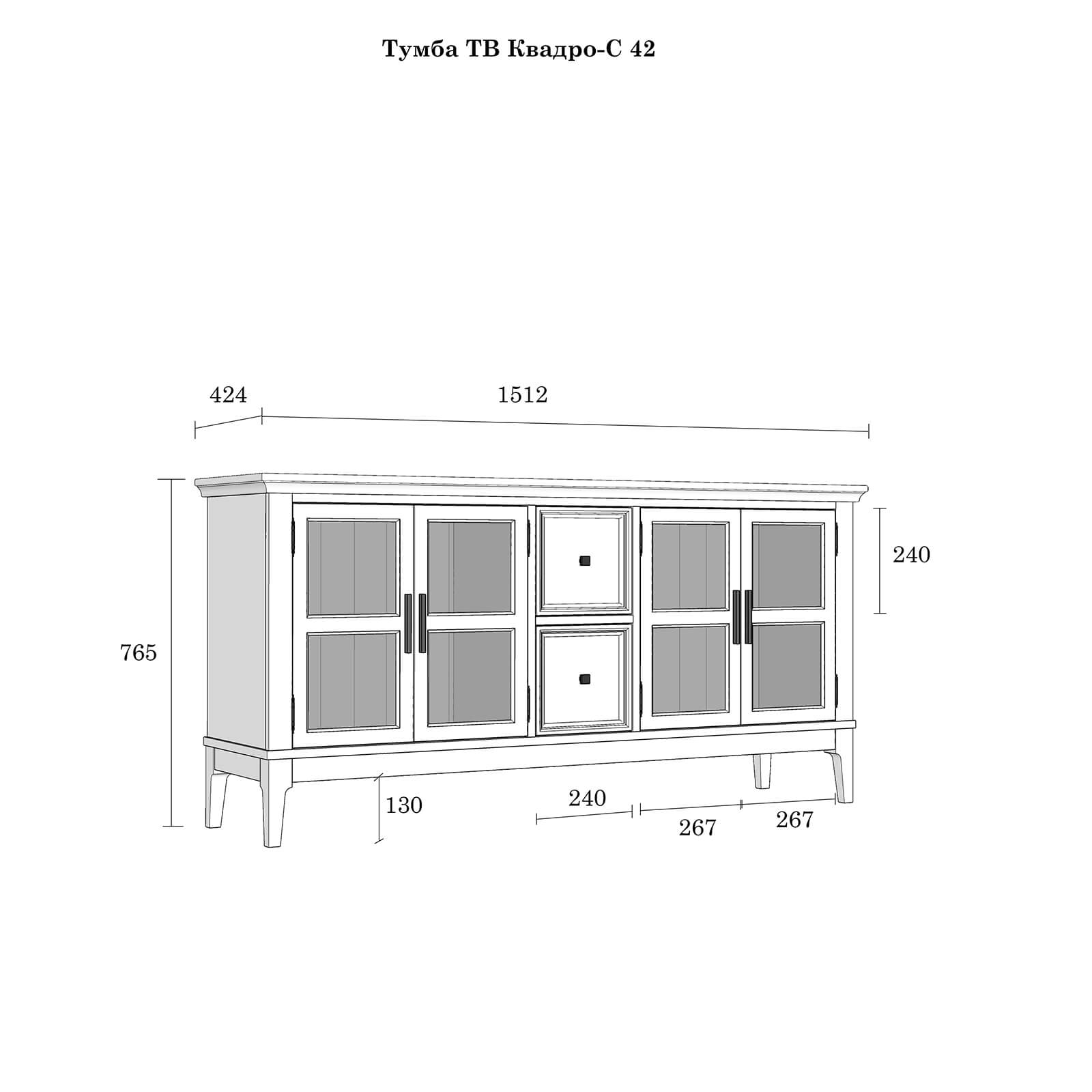 Предлагаем Вам привлекательную тумбу для ТВ  «Квадро-С» 42 из массива сосны для гостиной или спальни. Тумба ТВ состоит из двух отсеков за четырьмя стеклянными дверками и двумя выдвижными ящиками по середине. Внутри две широкие полки.