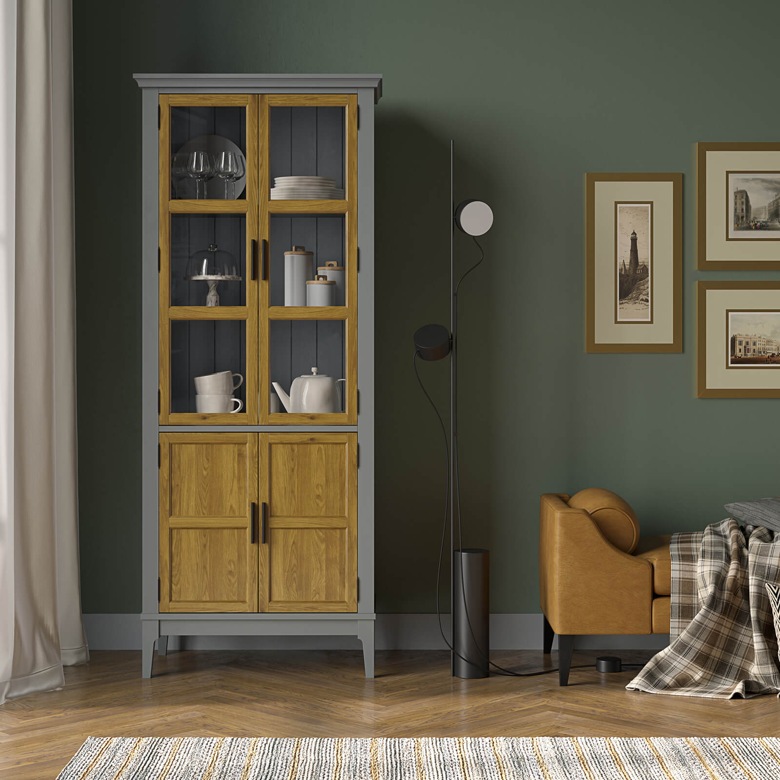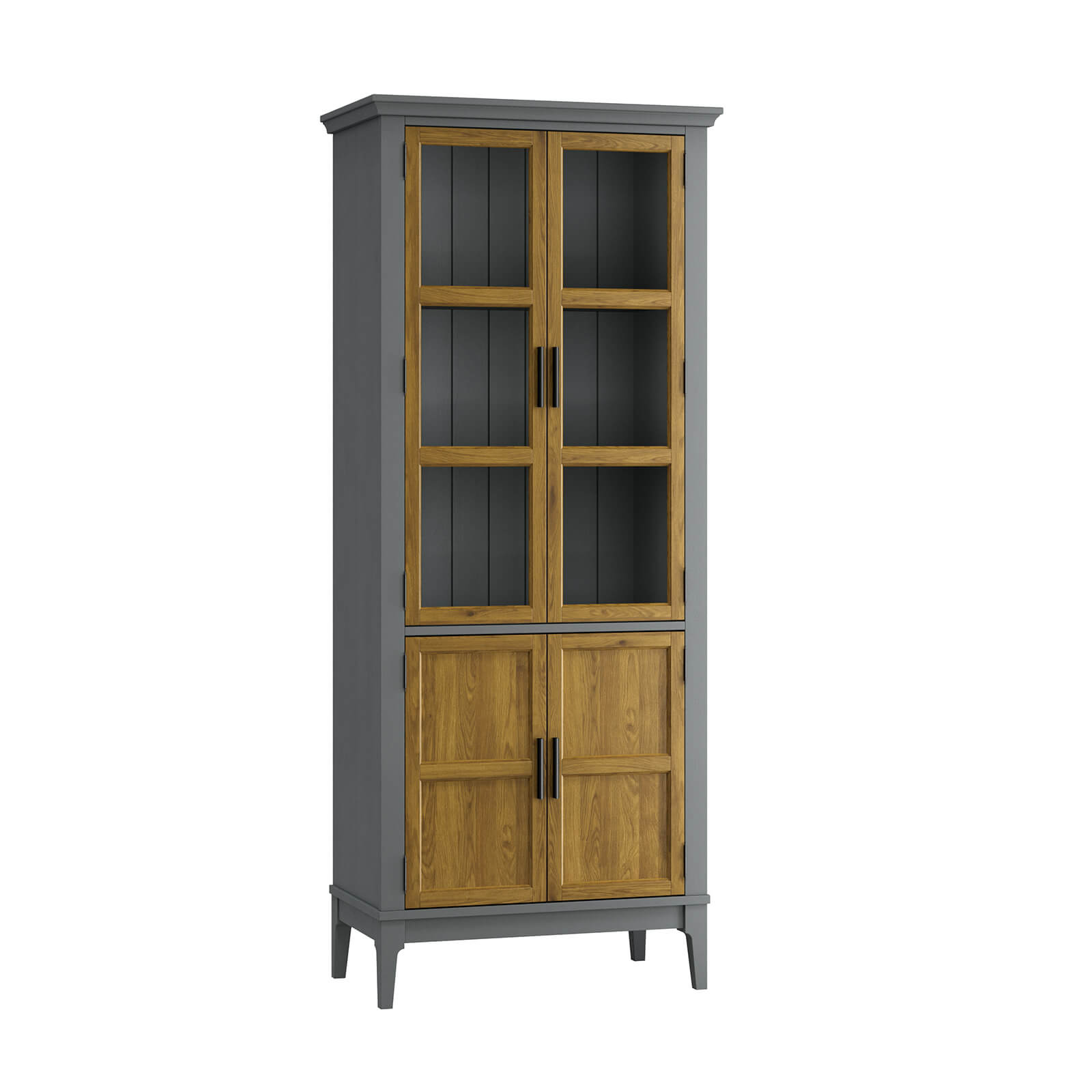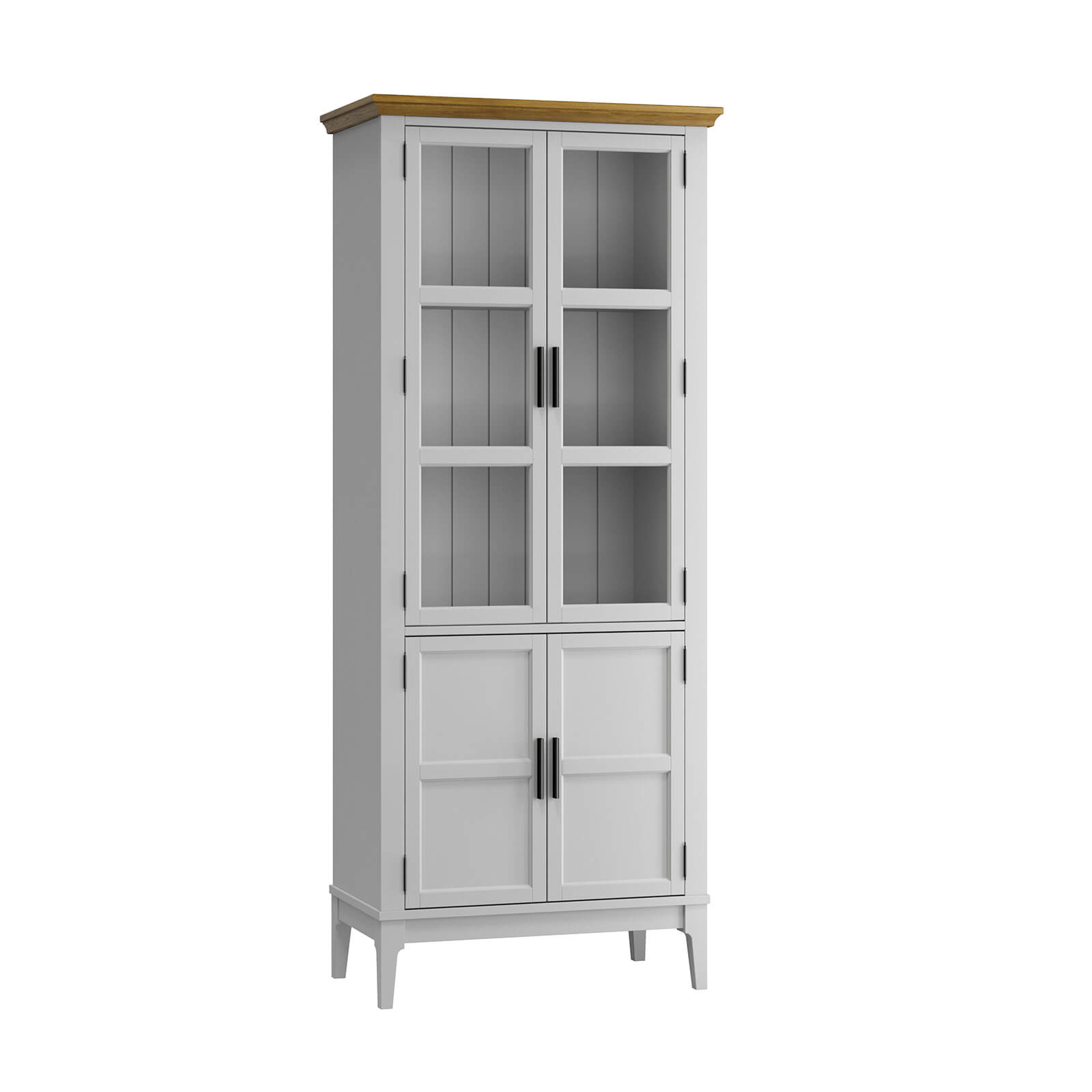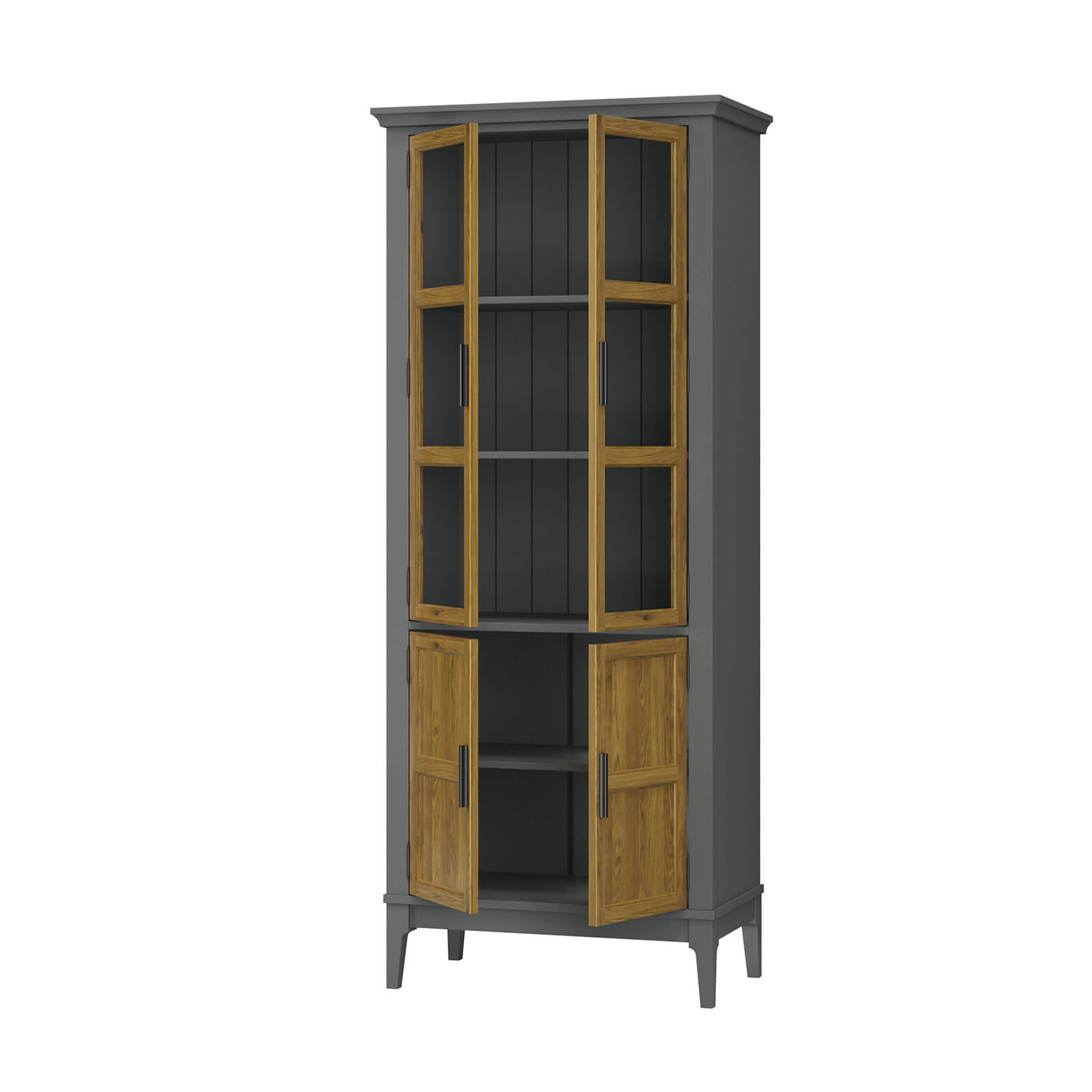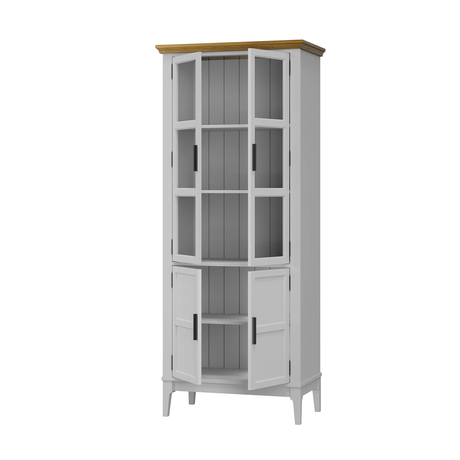 Представляем шкаф для посуды «Квадро-С» 22GT-185 из массива сосны и стекла. Представляет собой высокий шкаф с распашными, стеклянными дверями и филенчатыми дверями.