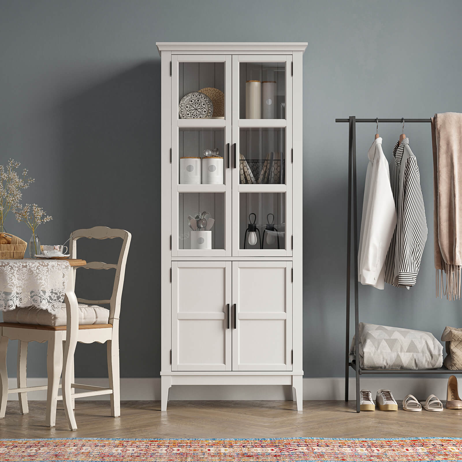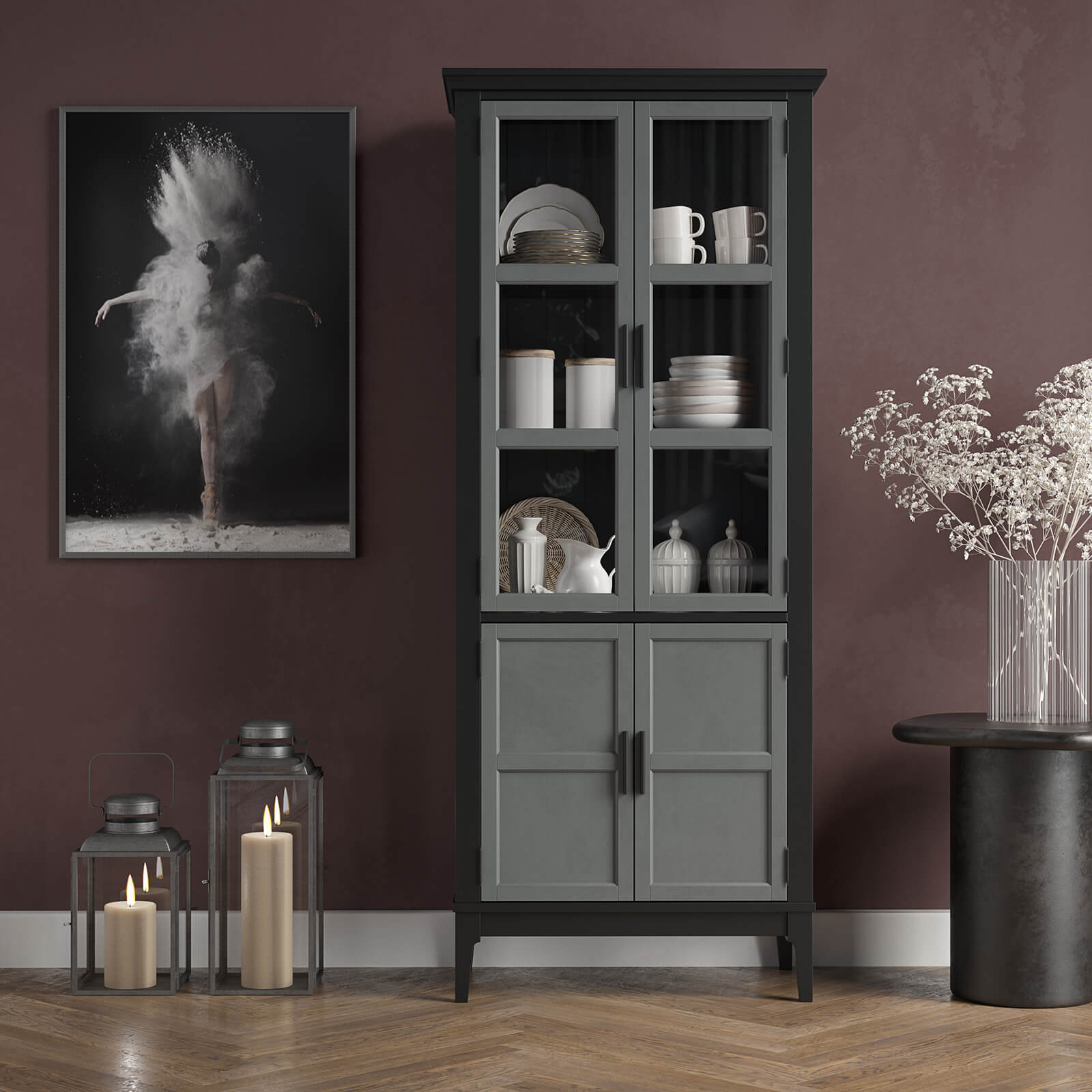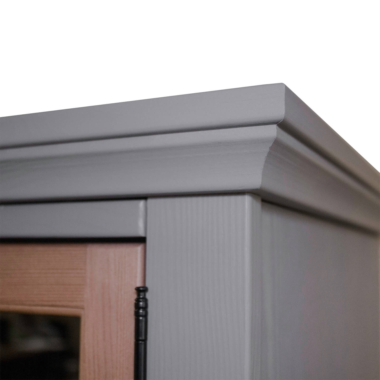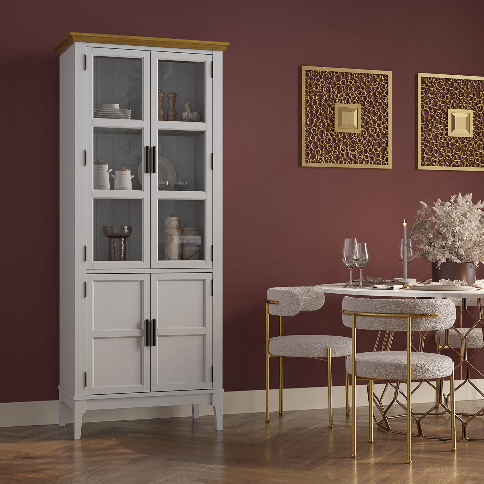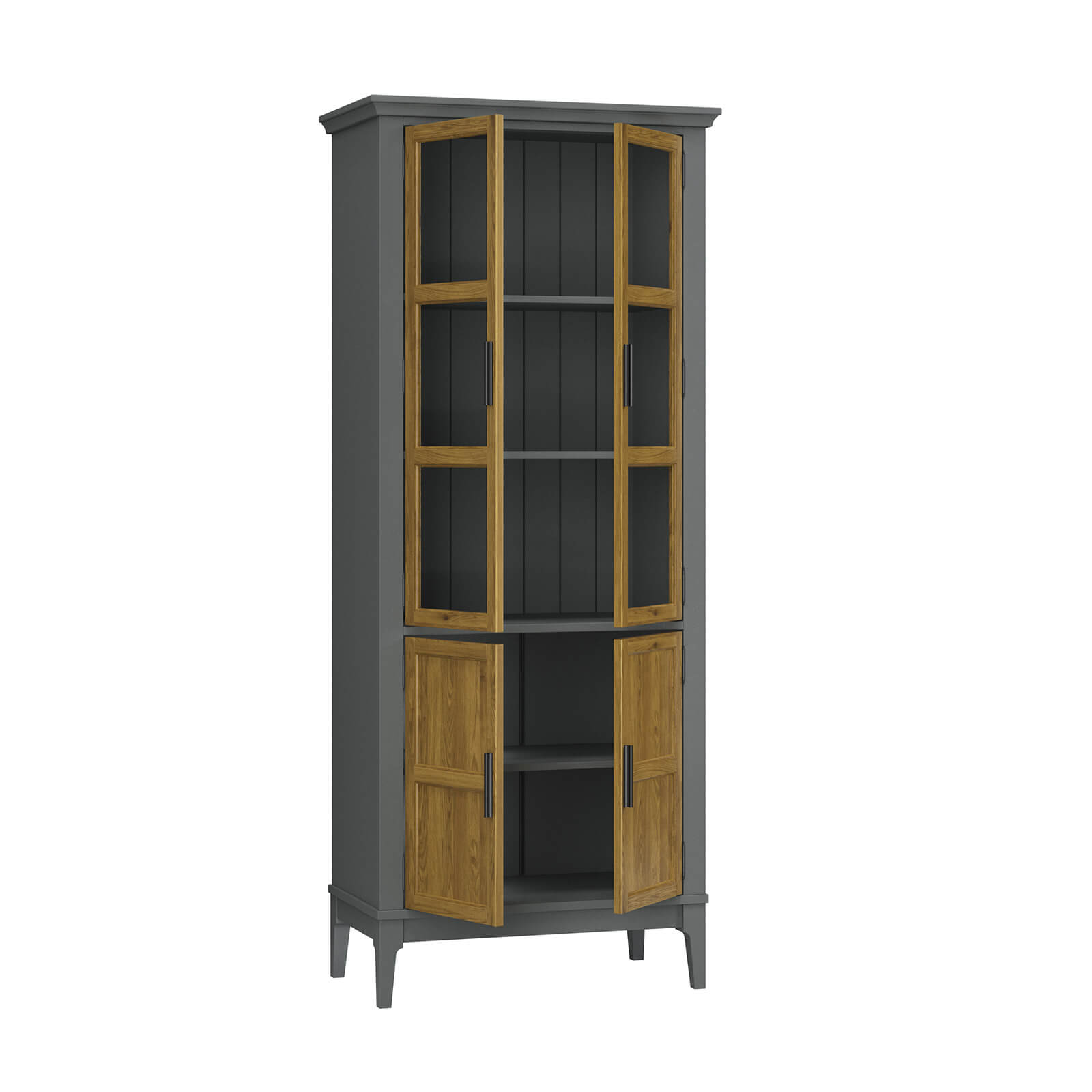 Представляем шкаф для посуды «Квадро-С» 22GT-185 из массива сосны и стекла. Представляет собой высокий шкаф с распашными, стеклянными дверями и филенчатыми дверями.