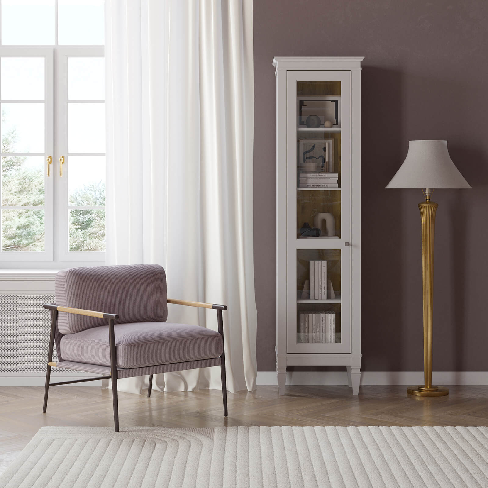 Шкаф для посуды “Ольса-С” 100Л - отличный вариант для хранения любимых книг. Здесь они будут в полном порядке и всегда под рукой. Оснащен пятью вместительными полками за стеклянной дверью. Устойчиво держится на высоких ножках. Хороший вариант для гостиной, детской комнаты или кабинета. Может использоваться самостоятельно или в сочетании с другими предметами из этой коллекции.