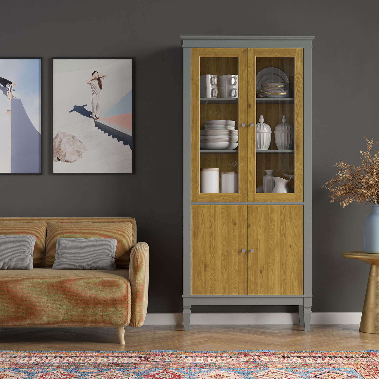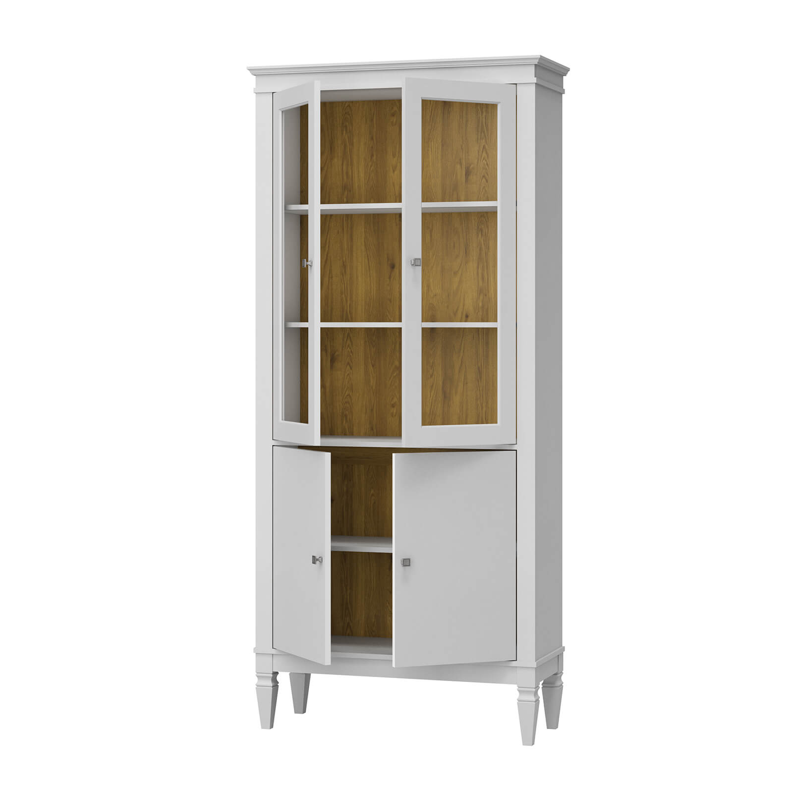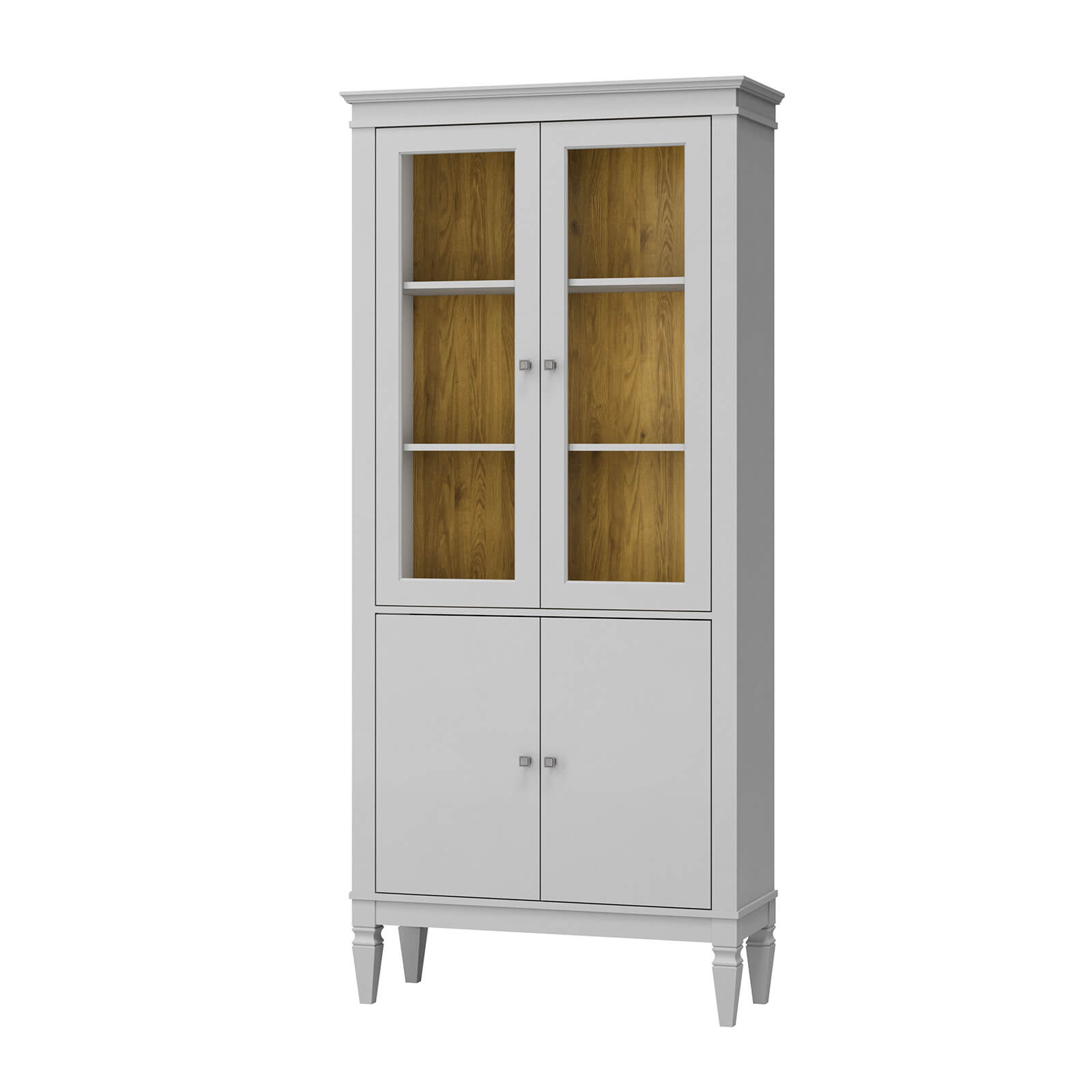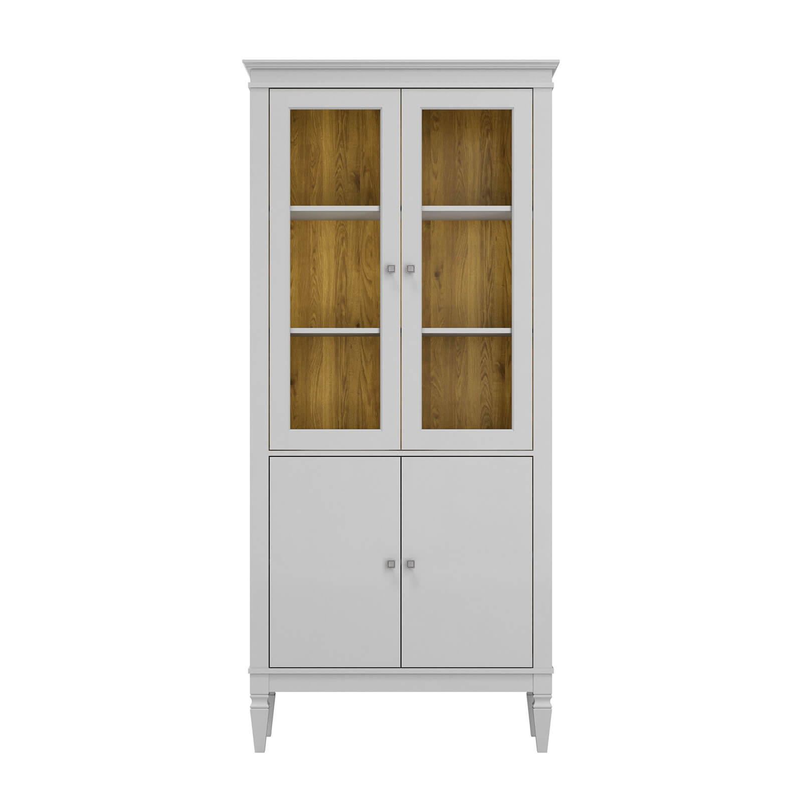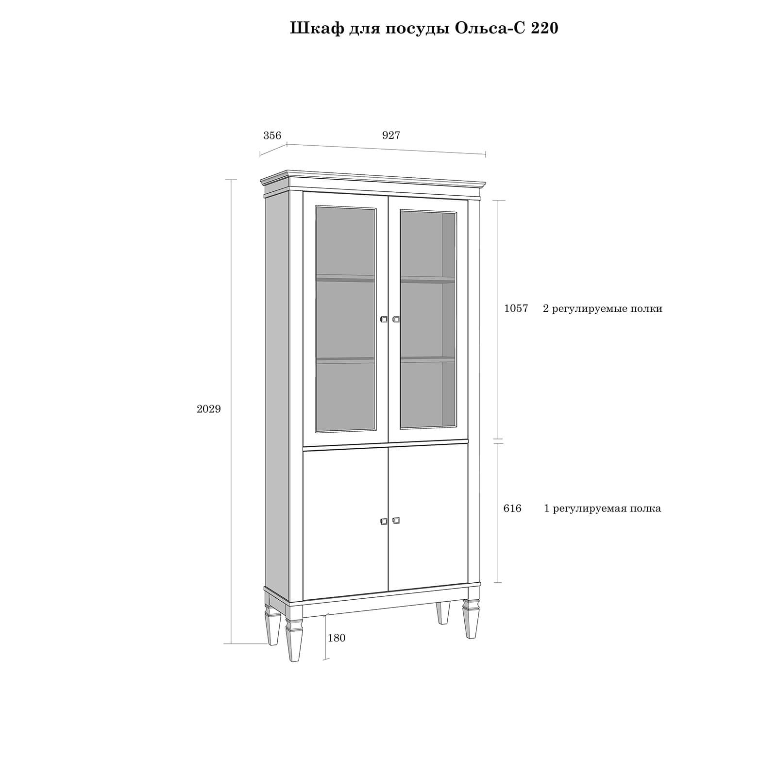 Шкаф для посуды “Ольса-С” 220 - отличный вариант для хранения любимых книг. Здесь они будут в полном порядке и всегда под рукой. Оснащен четырьмя вместительными полками за двумя стеклянными дверями и двумя глухими дверями. Устойчиво держится на высоких ножках. Хороший вариант для гостиной, детской комнаты или кабинета. Может использоваться самостоятельно или в сочетании с другими предметами из этой коллекции.