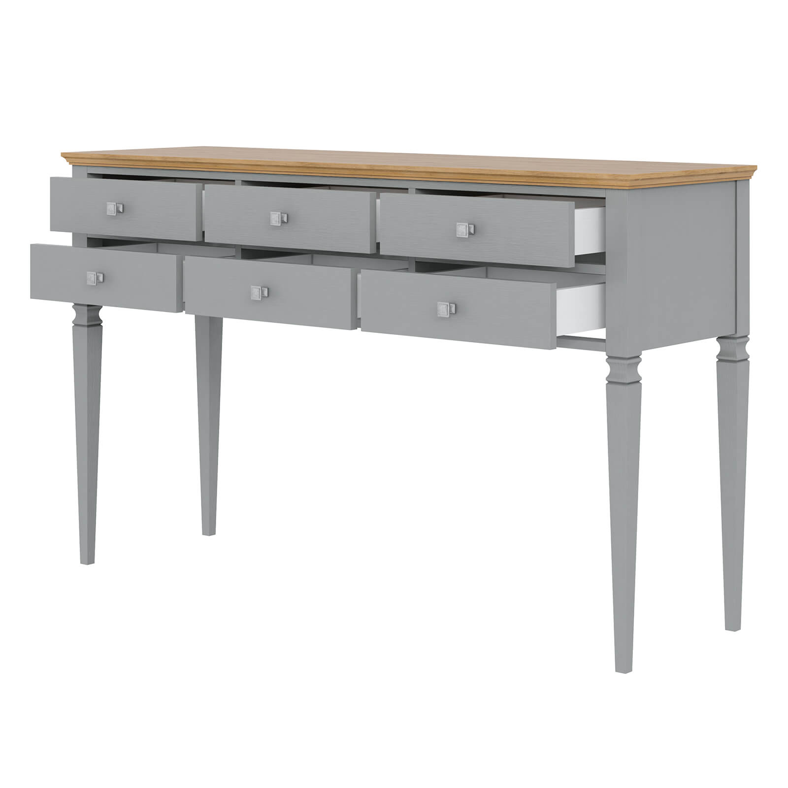 Удобная консоль, очень проста и функциональна. Отлично впишется как в кабинет, так и в гостиную комнату. Имеет шесть выдвижных ящиков для различных вещей.