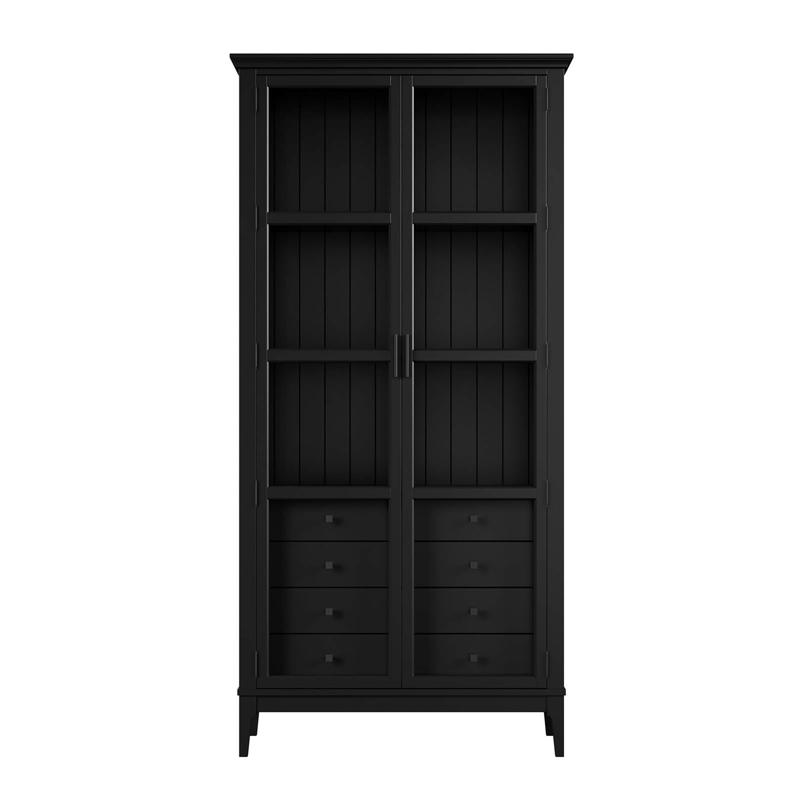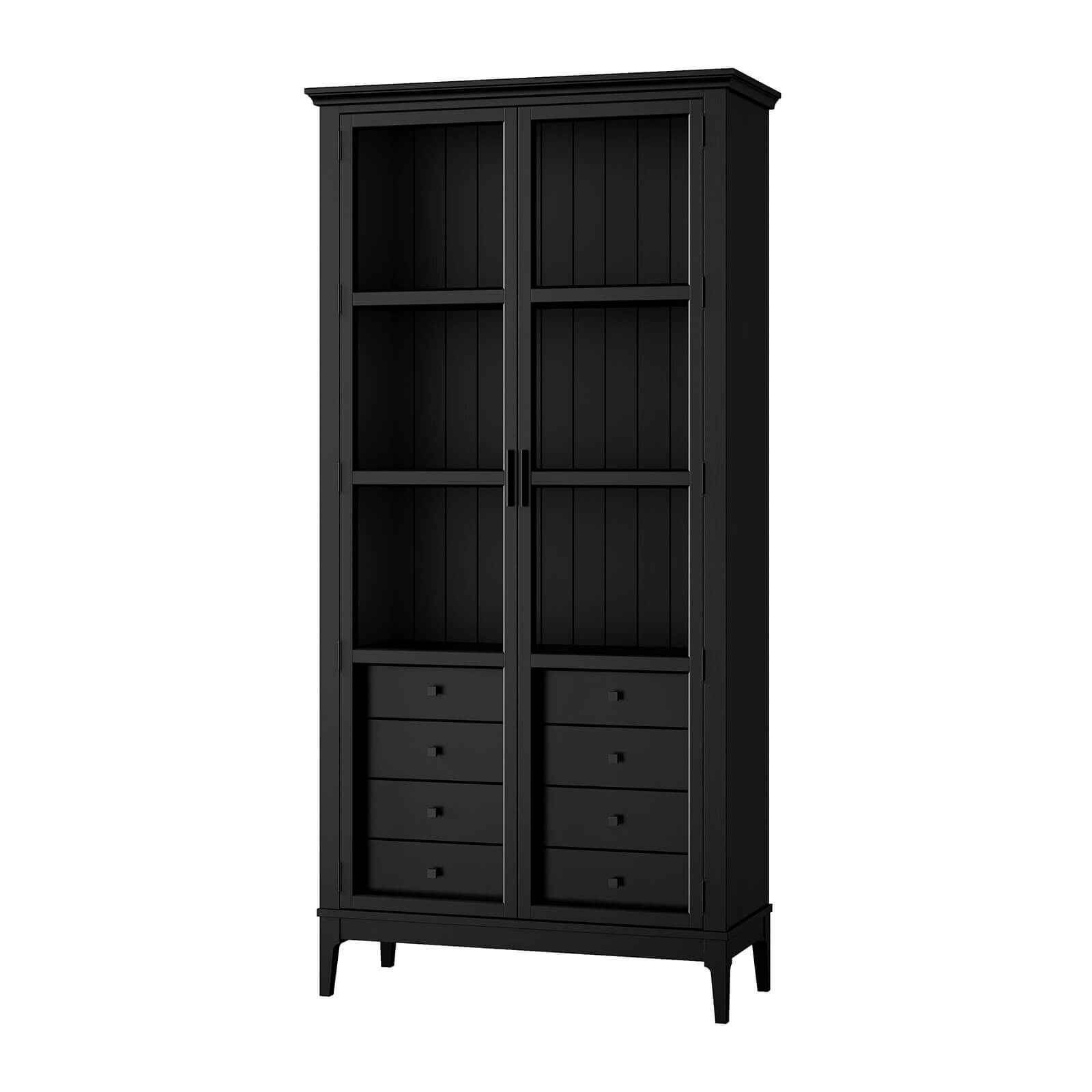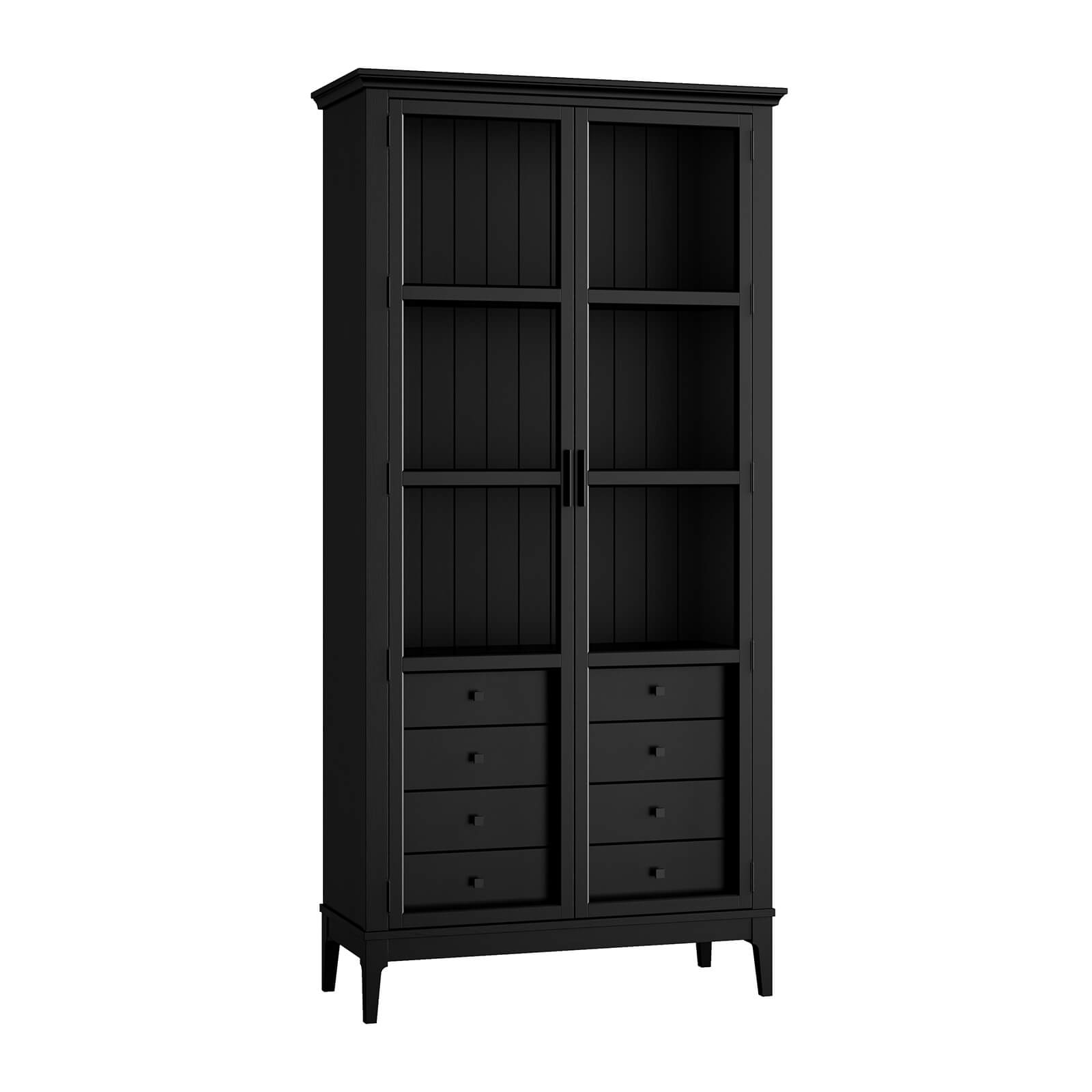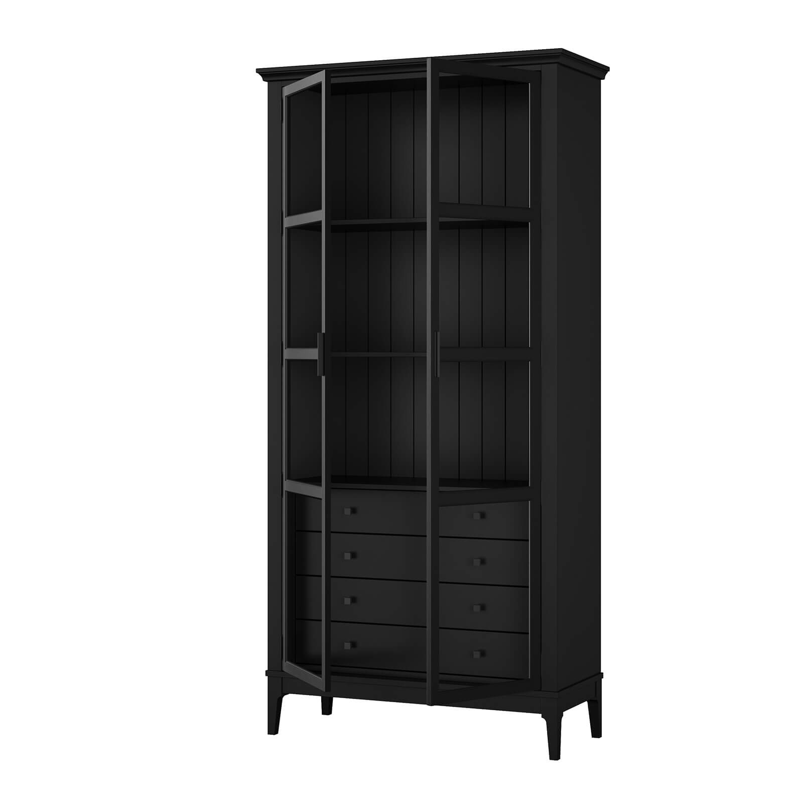Представляем шкаф для книг «Квадро-С» 220/04 из массива сосны. Представляет собой высокий шкаф с распашными, стеклянными дверями. Внутри четыре ящика и три полки.