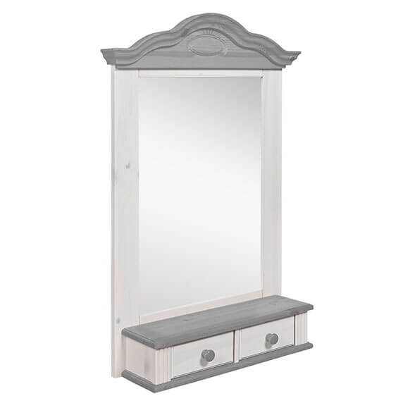 Полка-зеркало "Синди" (белый воск-серый) Образец из массива сосны