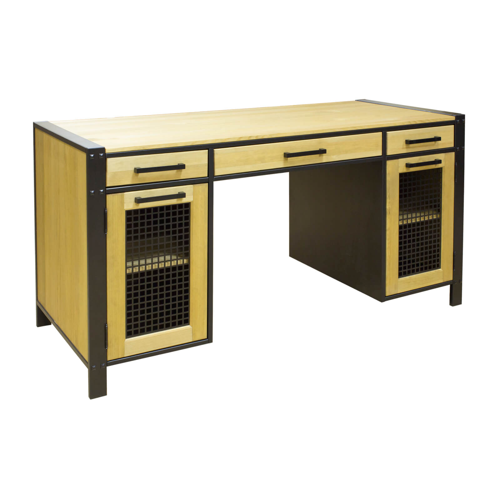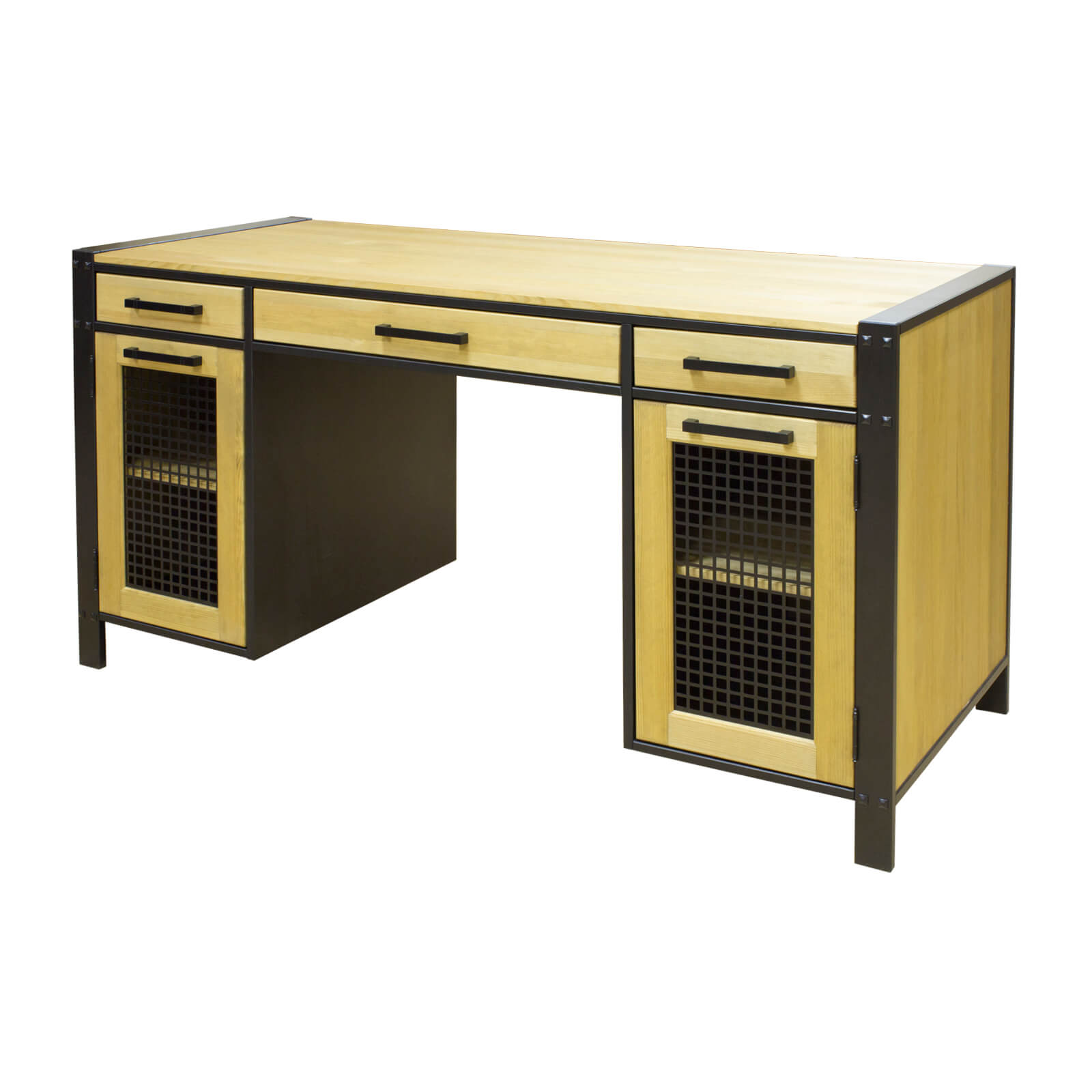 Классический стол из коллекции «Фактура-С». Широкая удобная столешница подойдет для работы за компьютером. Под ней расположено три выдвижных ящика и  две полки за распашными дверями для документов и разных мелочей. Все детали сделаны из натурального массива дерева, что обеспечивает их прочность и надежность. Отличное приобретение для личного кабинета, гостиной или детской. Широкая столешница удобна как для рисования и другого ручного труда.